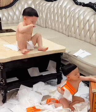 哥俩扯抽纸比赛,看谁扯出来更多