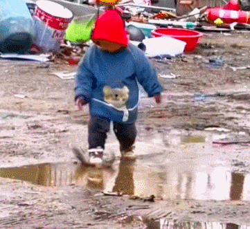 爱玩水是小孩的天性,这水踩得还很有节奏