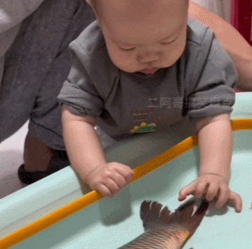 妈妈没告诉你鱼会跳的吗?这下被鱼打脸了吧