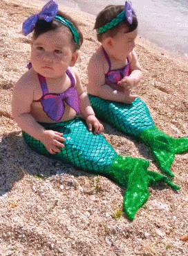 沙滩上惊现两条可爱的小美人鱼