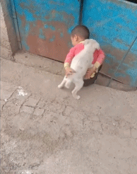 狗狗走累了,就让宝宝背它回家吧