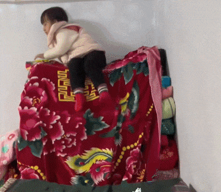 宝宝站到沙发上跳到姐姐肩膀上坐着,真的就是一个快…