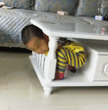 熊孩子把头伸进茶几下面出不来了,这怕是要记一辈子了