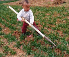 农村的孩子早成长,从小就会下地干活了