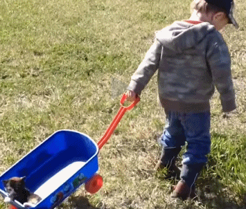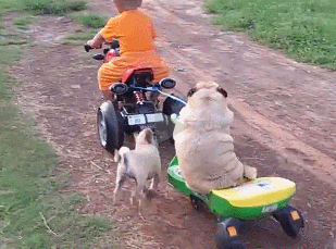 宝宝驮着狗狗去兜风
