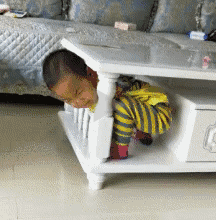 熊孩子把头伸进茶几下面出不来了,这怕是要记一辈子了