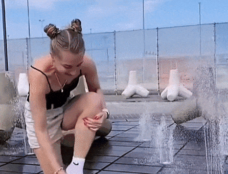 洋妹子脱想袜子想玩水,没想到一头倒在了地上