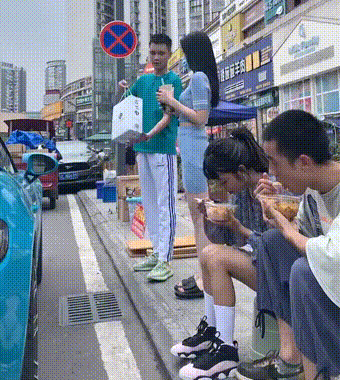 骑摩托的男女被羊头攻击,不慎摔倒在地