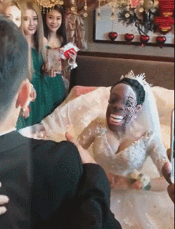 恶搞新娘戴面具搞笑扮丑