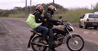 骑摩托的男女被羊头攻击,不慎摔倒在地