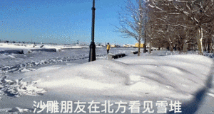 沙雕朋友在北方看见雪堆时忍不住向上扑倒
