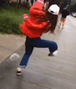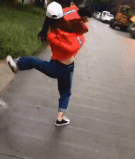 奇葩女子魔鬼附体,大街上走出另类的步伐