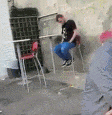 坐在高凳子上睡觉的男人,看起来摔得真疼