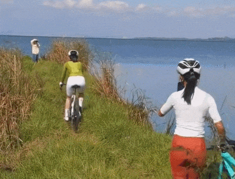 没想到妈妈骑车的技术还不如儿子,摔到水沟里太糗了