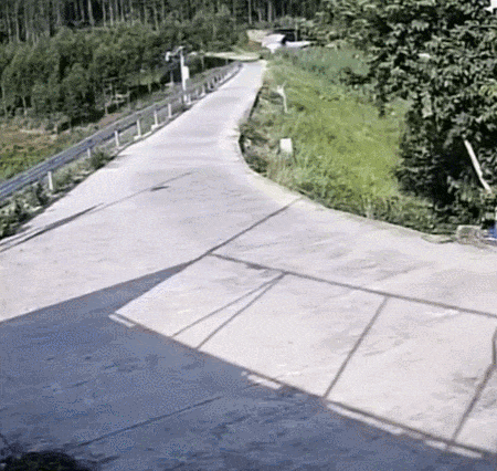 哥们骑摩托车一心只顾看美女,没想到连人带车翻沟里了
