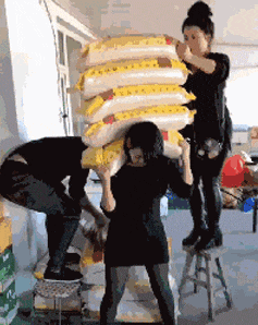 妹子力大无穷啊!能扛这么多袋大米