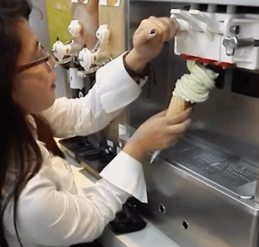 妹子有点贪心,甜筒不能接装太高了