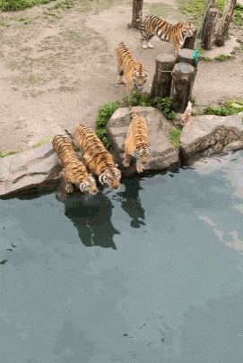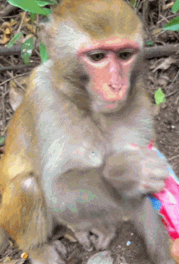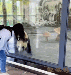 一女子在动物园里学猩猩的动作,吓得猩猩跑开了