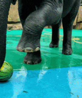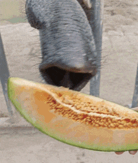大象吃不了整个西瓜,用脚踩烂后再捡起来吃