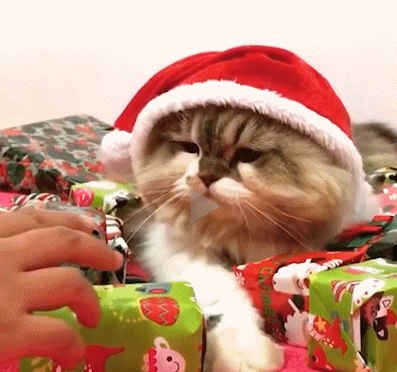护着圣诞礼物的猫咪,谁也别想从这拿走