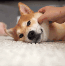 躺在地上让主人捏脸的好狗狗