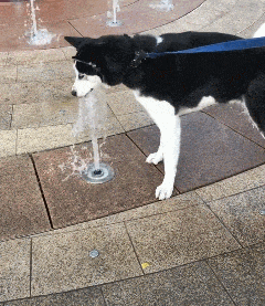 对着喷泉喝水的狗狗