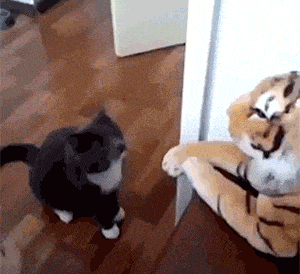 猫喵对假老虎毫不手软,连续挥动喵喵拳