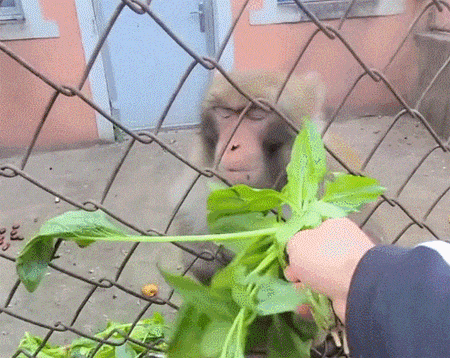 一脸无语的猴子,谁家猴吃菜叶啊