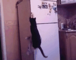 跳起来拔着冰箱门偷吃的猫猫