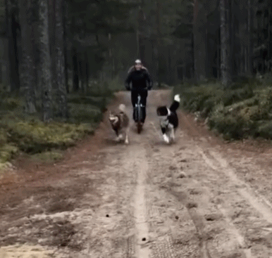 两只狗狗只顾向前跑,把主人摔得真惨