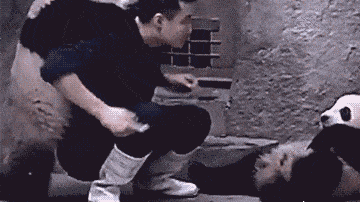 小熊猫被人反手一把抱起来