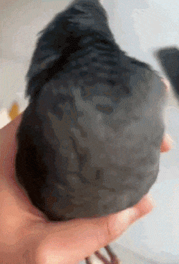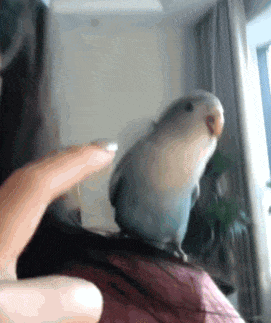非常听话的鹦鹉,跟着主人手势练习抬头低头