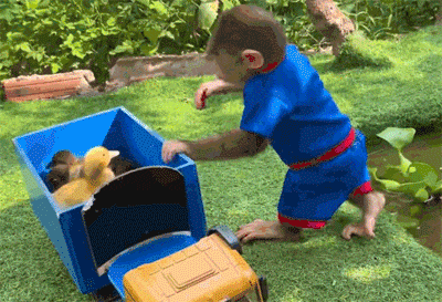 能帮主人干活的猴子,把鸭子放到池子里玩水