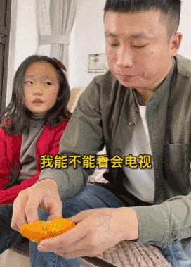 爸爸答应女儿可以看电视,但是千完不能坐沙发