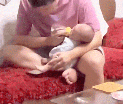 爸爸给你喂奶吃,一下把奶喷到了宝宝的脸上