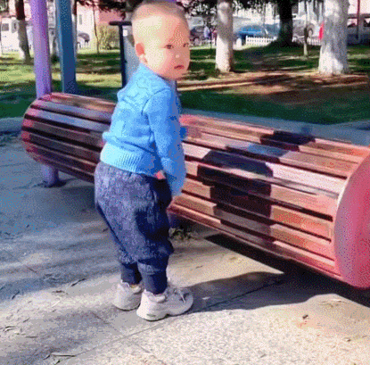 玩滑滑梯的小宝贝故意跳进水坑里,真是个难忘的童年