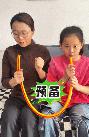 女儿跟妈妈一起比赛吹面粉,没想到女儿不按套路出牌