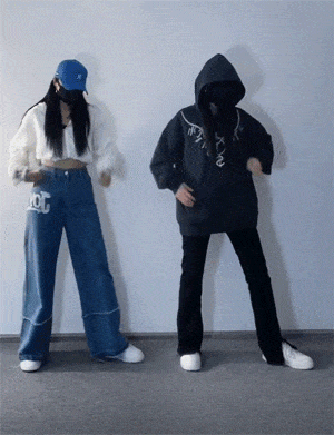 戴上帽子和口罩的两女生整齐跳舞,动作简单却好看