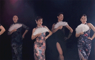 男人混在女人堆中齐跳大上海,只看动作不输女人