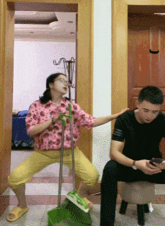 老婆在家扫地时即兴跳舞
