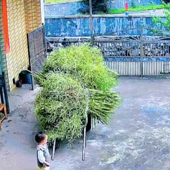 监控拍下贪玩的小孩瞬间被推车举高高,幸好奶奶及时…
