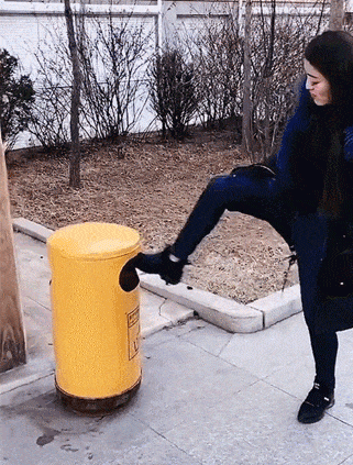 妹子敢在垃圾桶上刮鞋泥?我要好好惩罚你一下