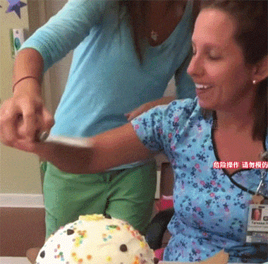 气球藏在蛋糕下,骗老妈用刀切蛋糕扎破它