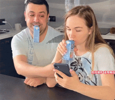 恶搞捏破牛奶盒,喷女友一脸上