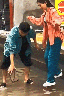 给美女前面垫砖头,骗到水中间转身离去