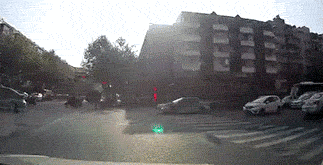 骑电动车闯红灯被撞飞了