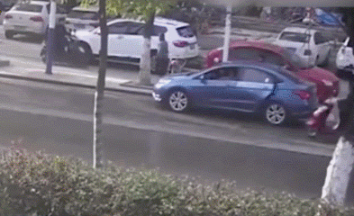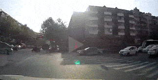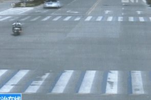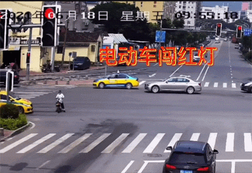 骑电动车闯红灯被撞飞了