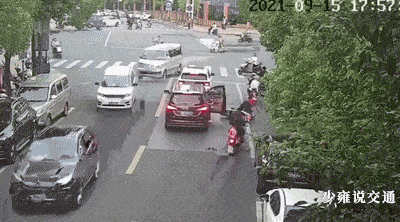 三轮车与电动车一起撞红灯,被撞就在一瞬间
