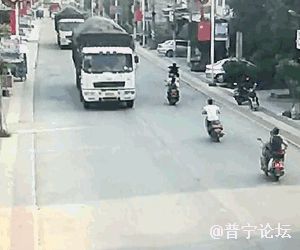 任何两轮车在大车面前都不堪一击,请时刻远离大车