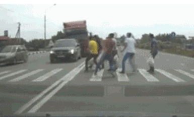 过马路切记左右观察,因为随时都可能发生意外